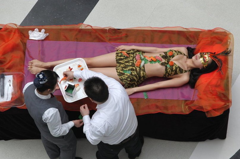 爆料:大连美食节惊现美女人体“宴”(图)(2)